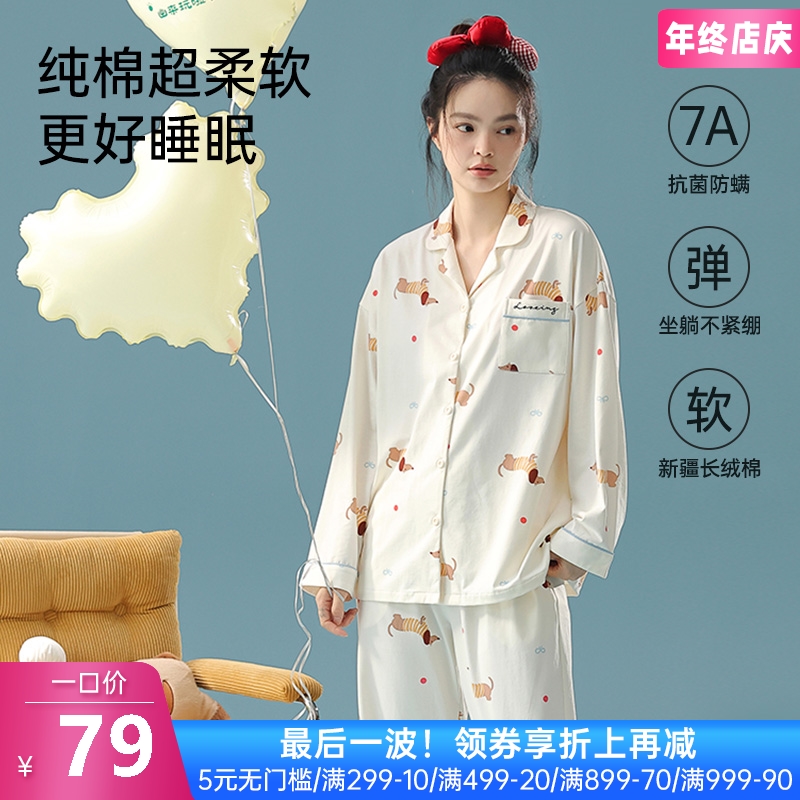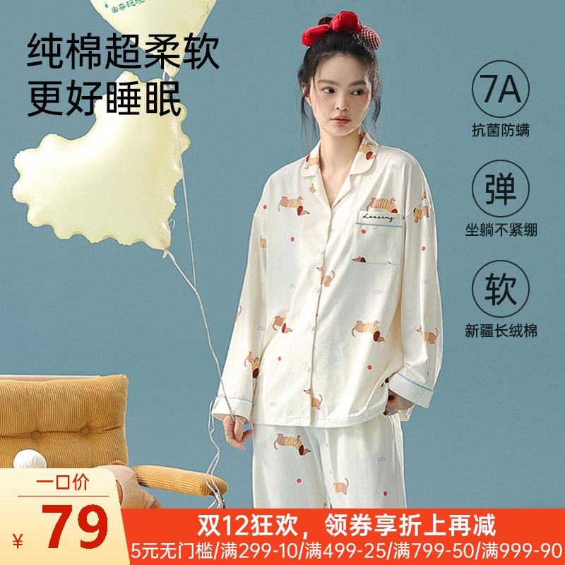 女士全棉抗菌防螨睡衣(黄色腊肠狗)