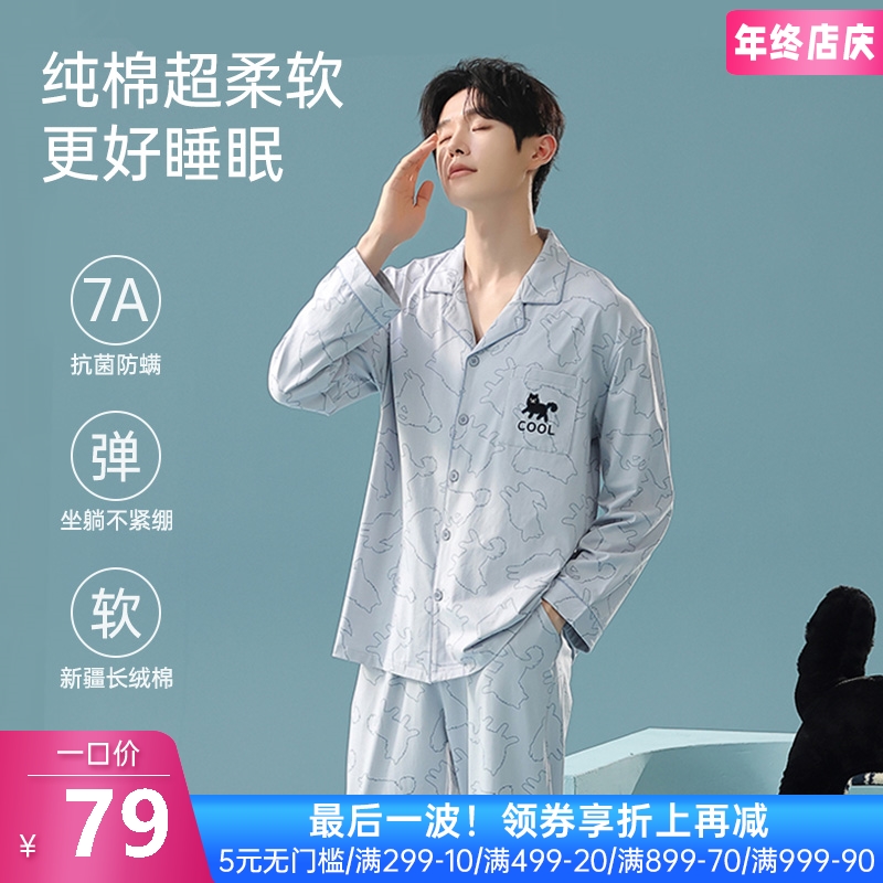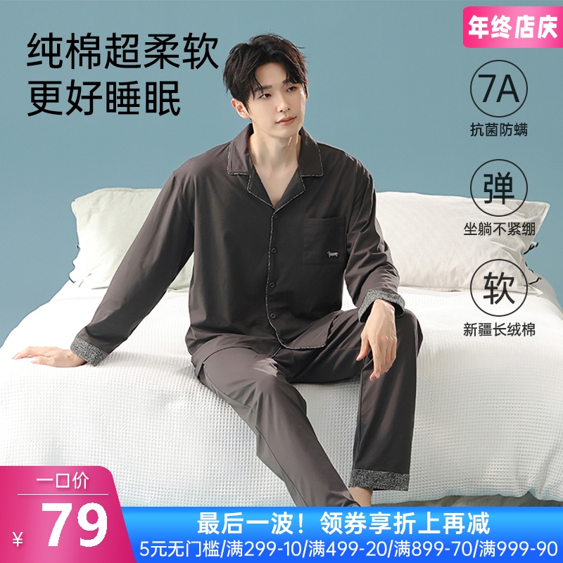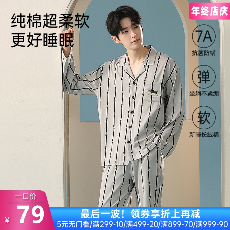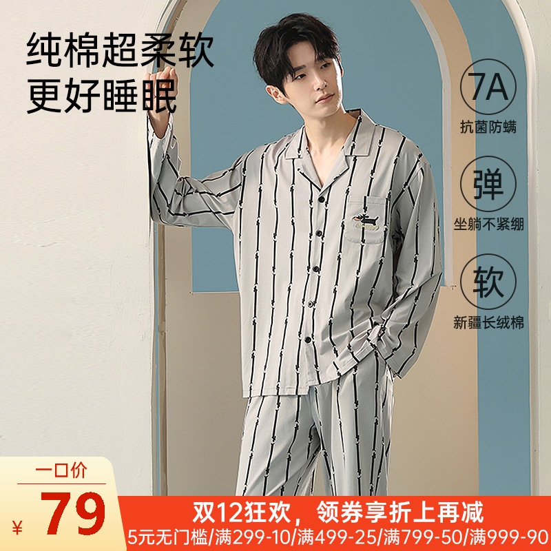 男士全棉抗菌防螨睡衣(条纹小狗)