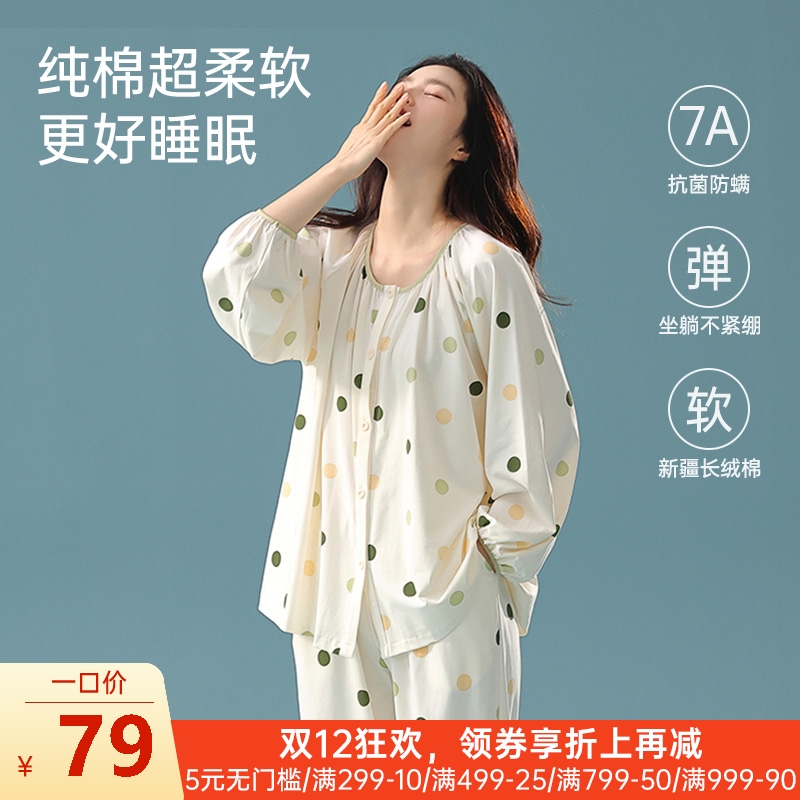 女士全棉抗菌防螨睡衣(彩色波点)