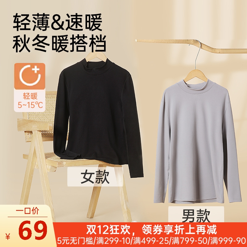 女士双面磨毛全棉小高领打底衫