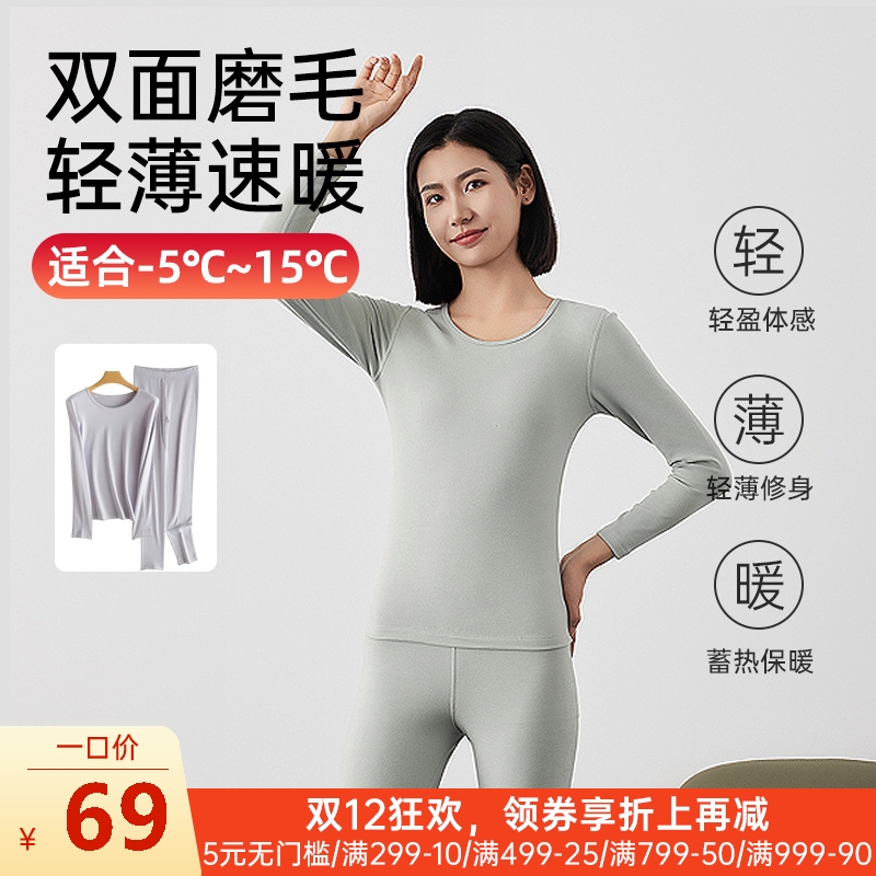 女士双面磨毛全棉保暖内衣