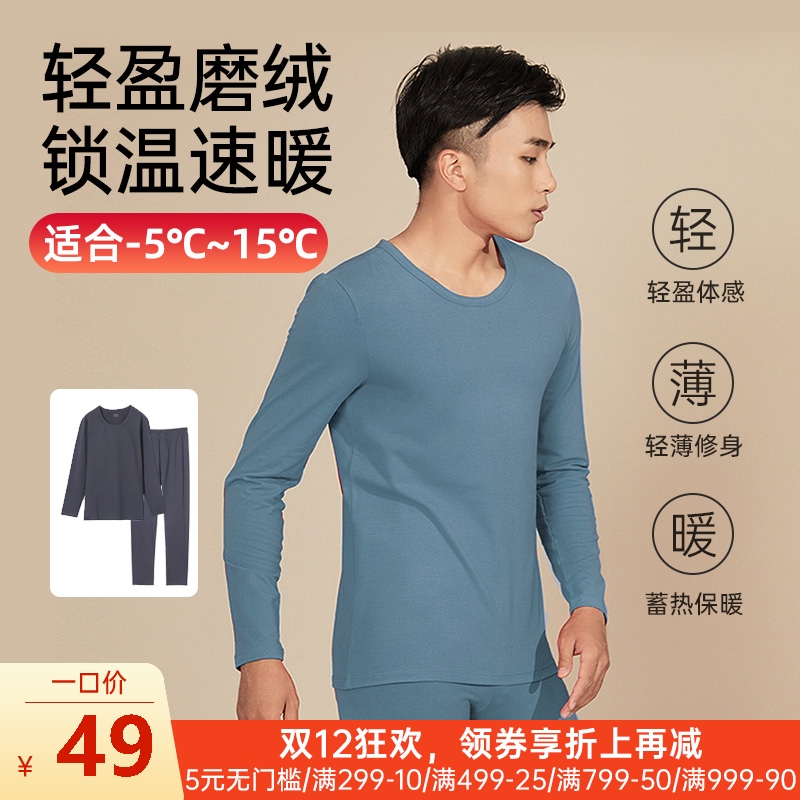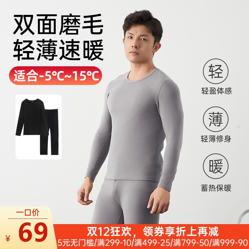 男士双面磨毛全棉保暖内衣