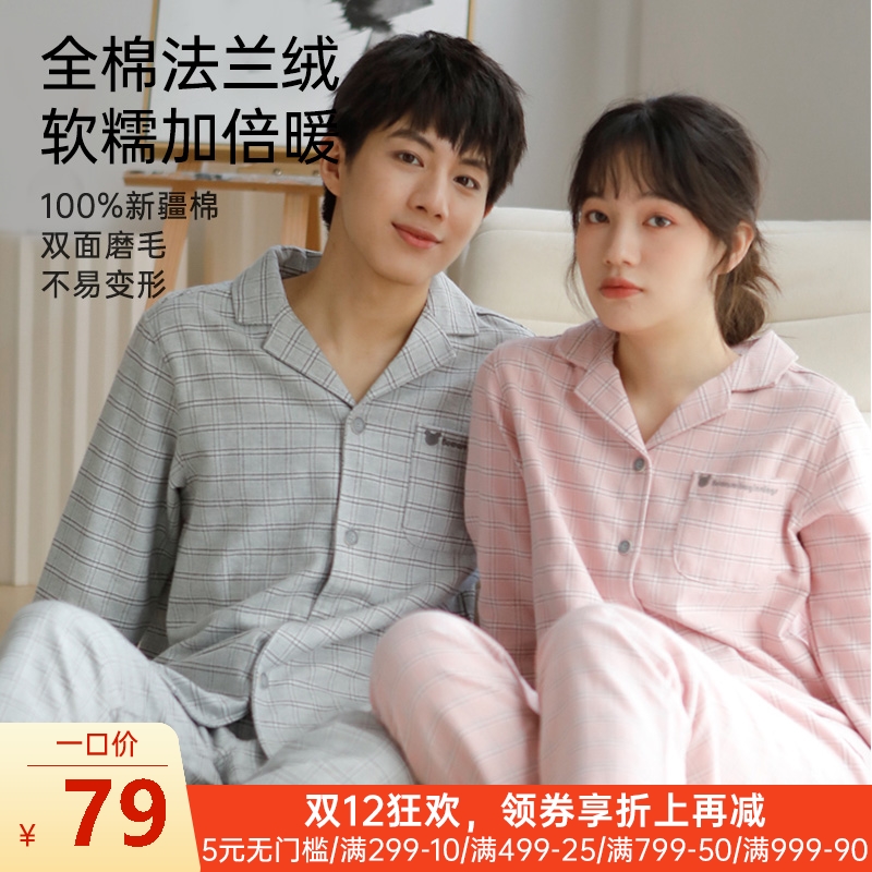 法兰绒保暖开襟家居服