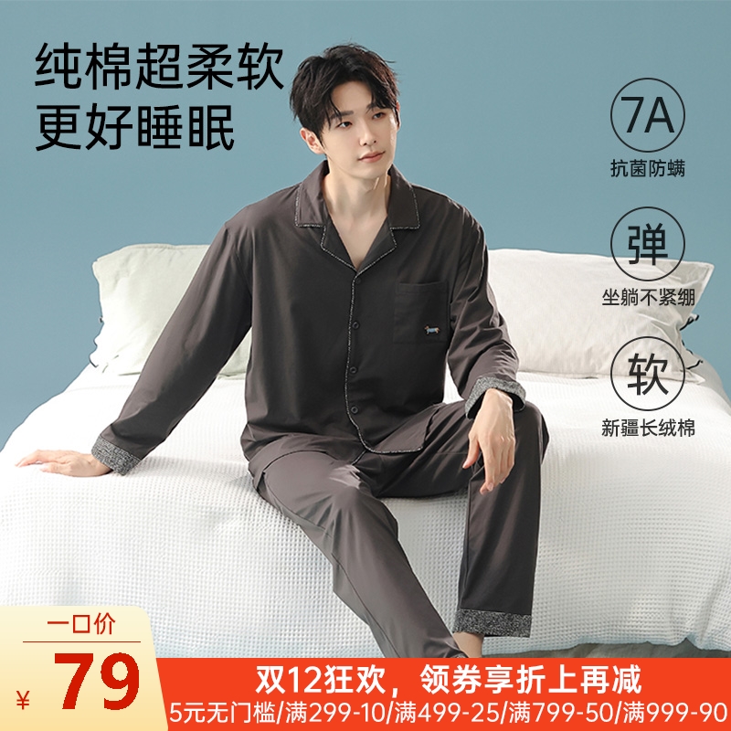 男士全棉抗菌防螨睡衣(蓝狗)