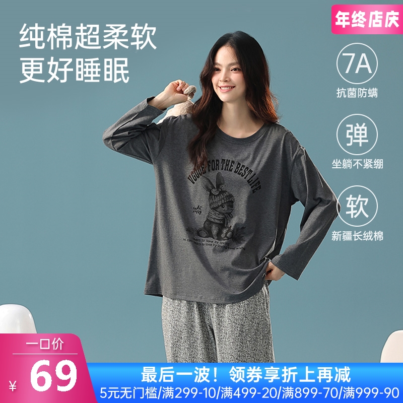 女士全棉抗菌防螨睡衣(水墨兔子)
