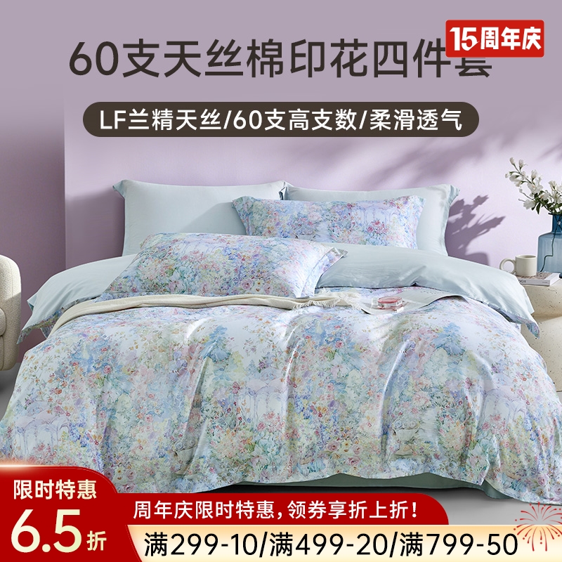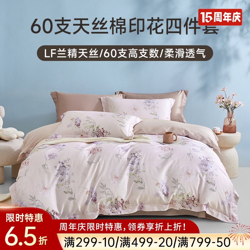 60支超柔天丝棉印花拆件(浪漫花林-粉)