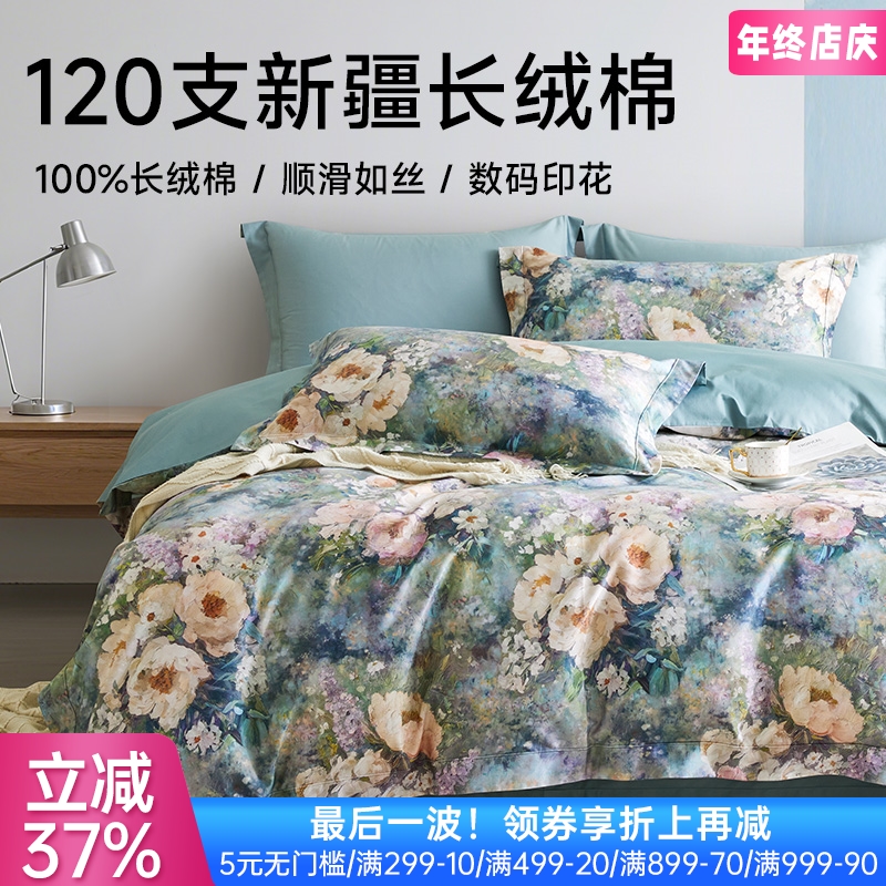 臻品120支长绒棉轻奢印花四件套(胭脂玫瑰)