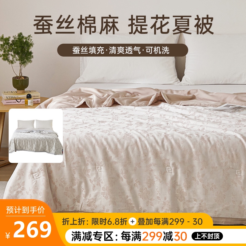 蚕丝棉麻提花夏被(蓝色)