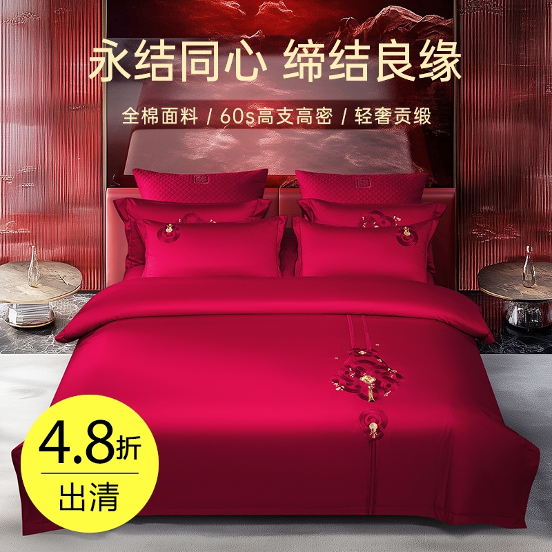 臻品系列全棉刺绣禧嫁四件套(美丽红妆)