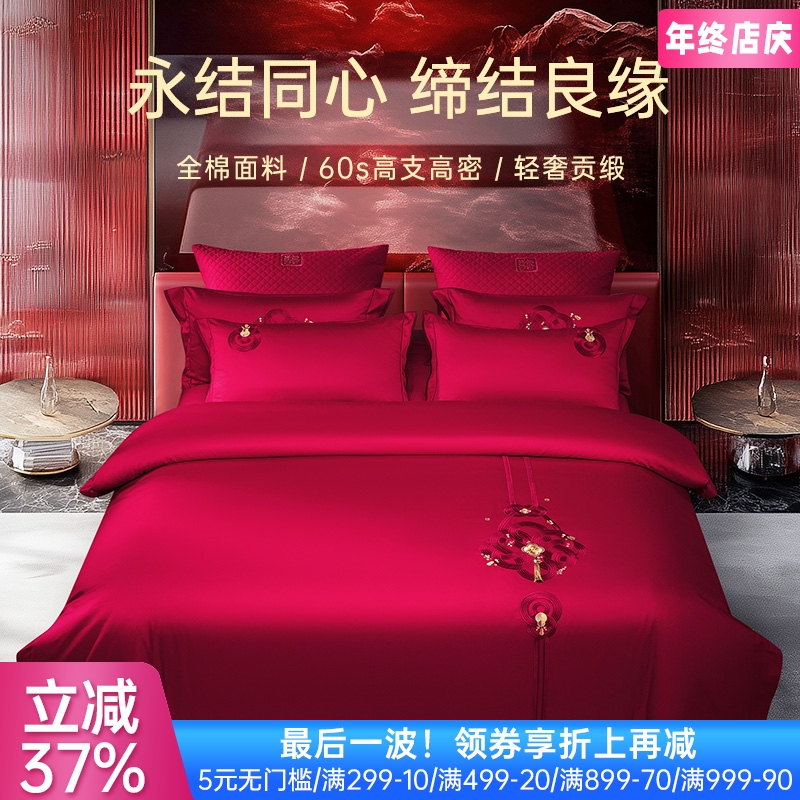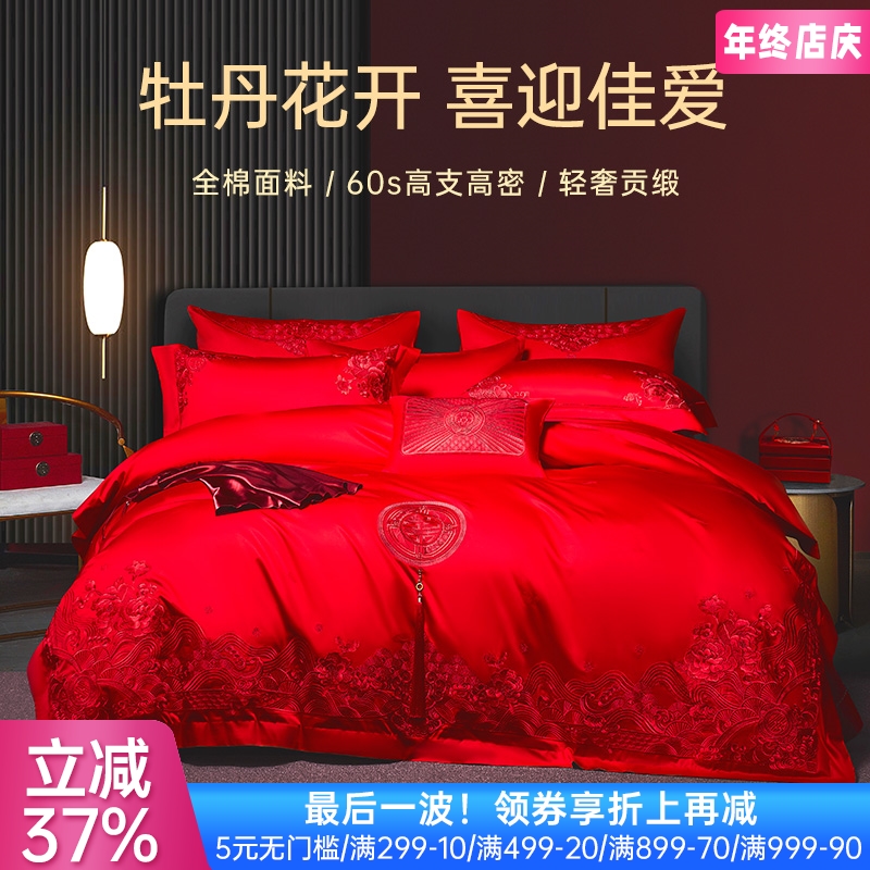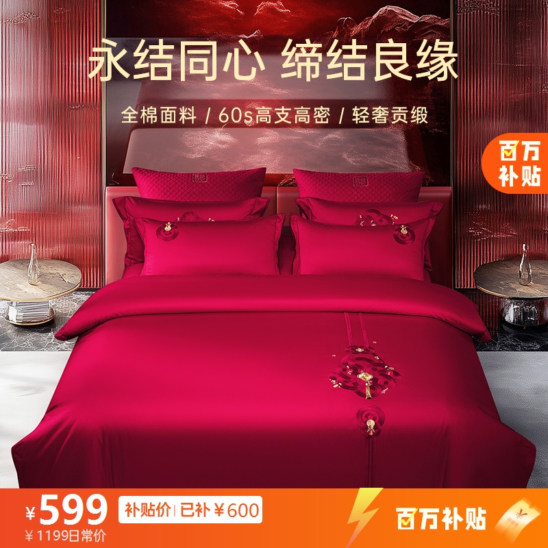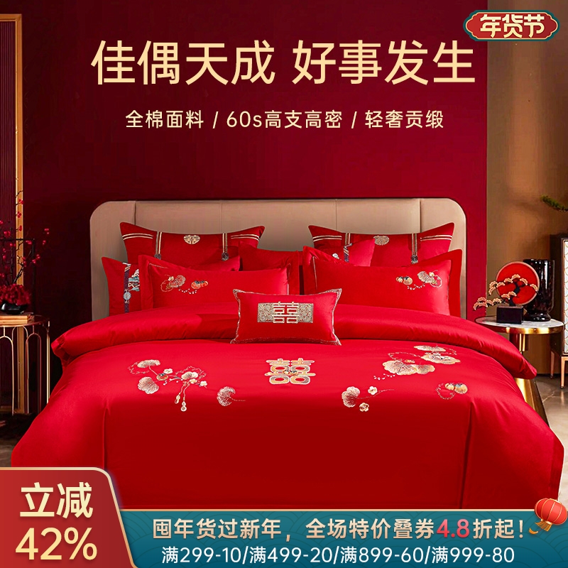 臻品系列全棉刺绣禧嫁四件套(美丽红妆)
