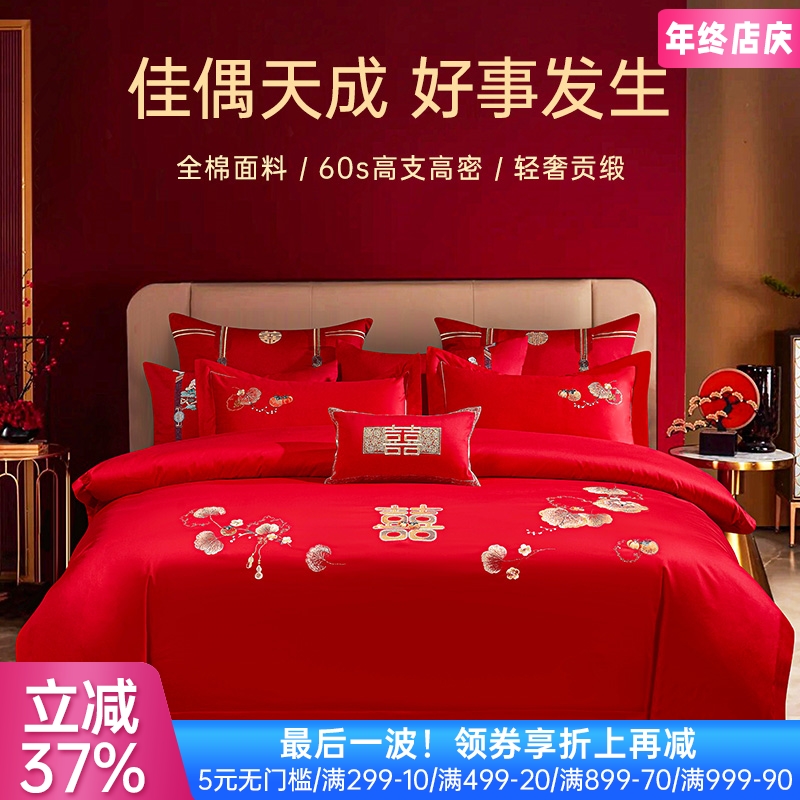 臻品系列全棉刺绣禧嫁四件套(最美喜事)