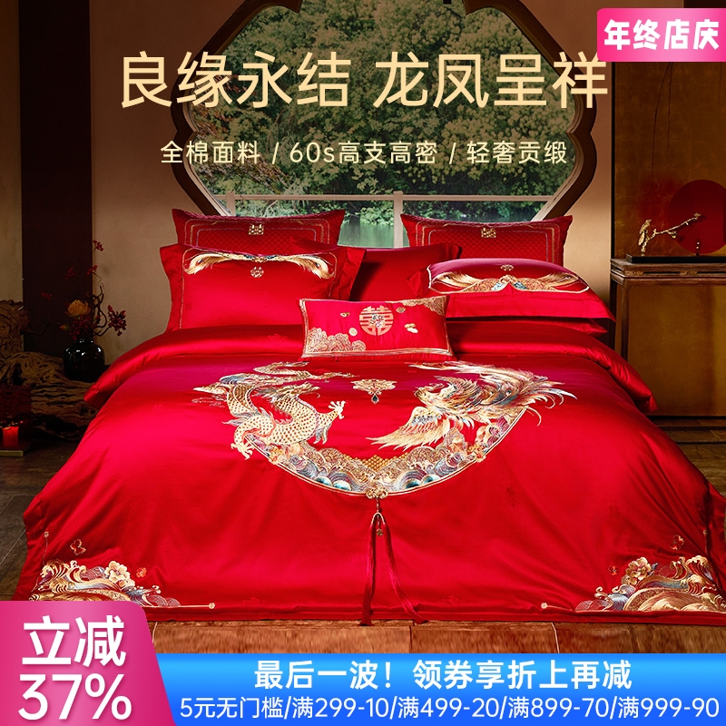 臻品系列全棉刺绣禧嫁四件套(龙凤喜舞)