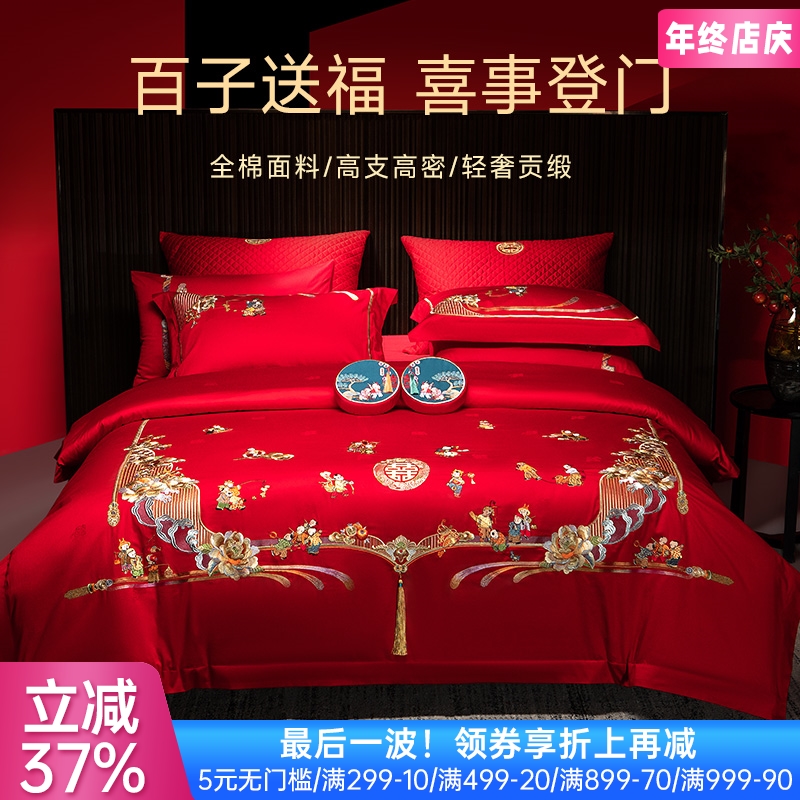 臻品系列全棉刺绣禧嫁四件套(金童华锦)