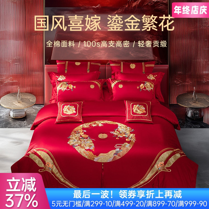 臻品系列100支全棉刺绣禧嫁四件套(鎏金繁花)