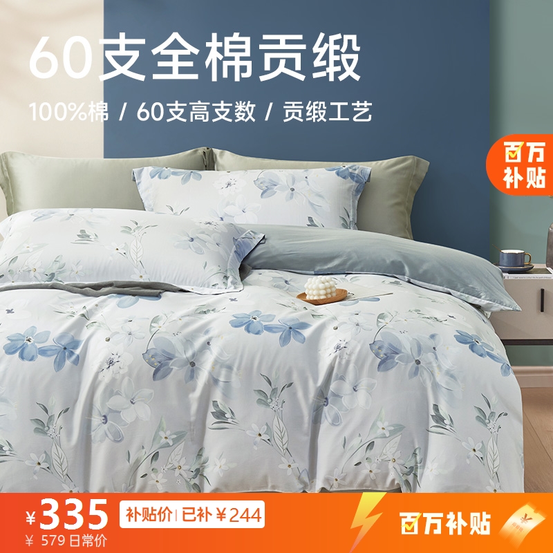 臻品120支长绒棉轻奢印花四件套(黛影流芳)
