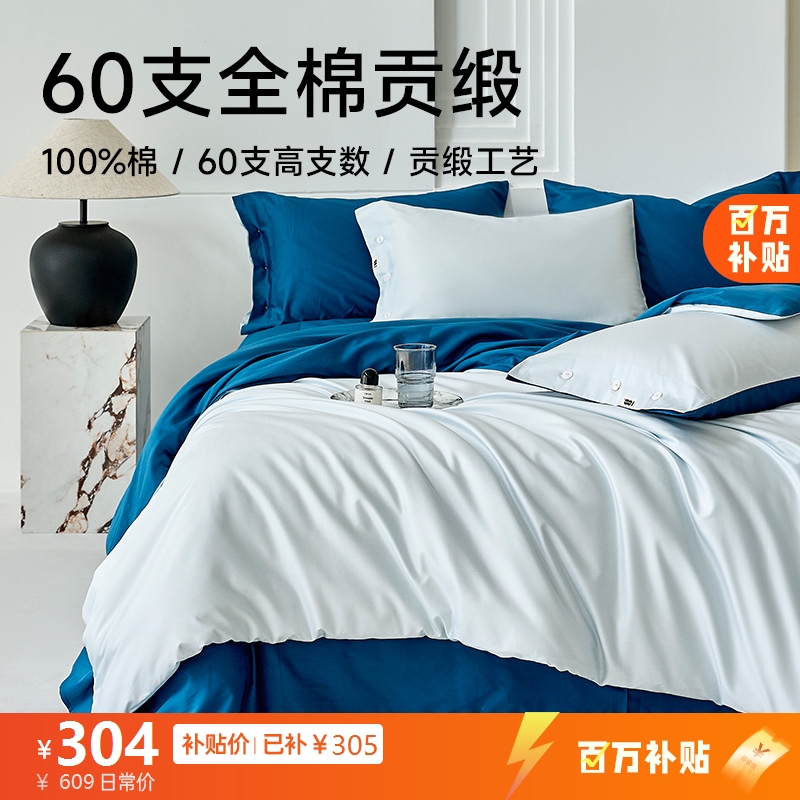 臻品120支长绒棉轻奢印花四件套(烟蓝花海)