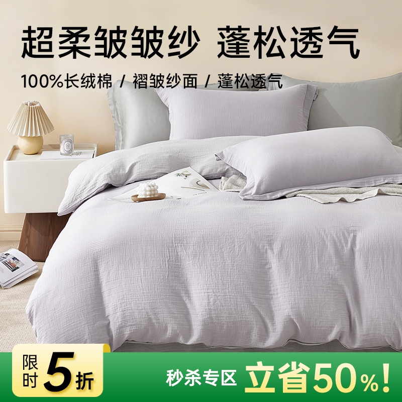 超柔全棉皱皱纱四件套(烟紫/月光灰)