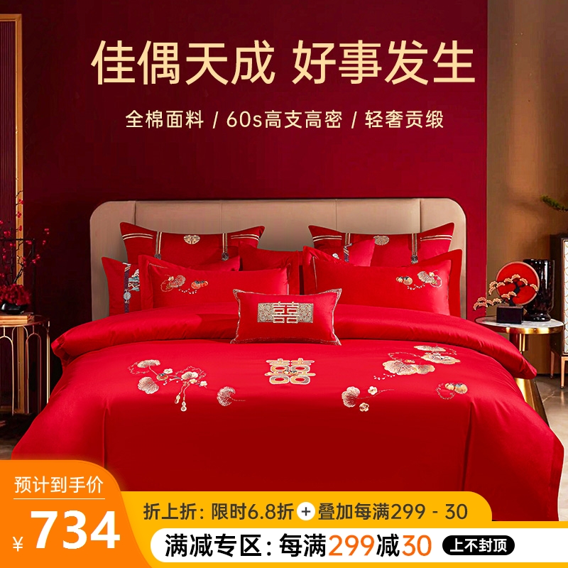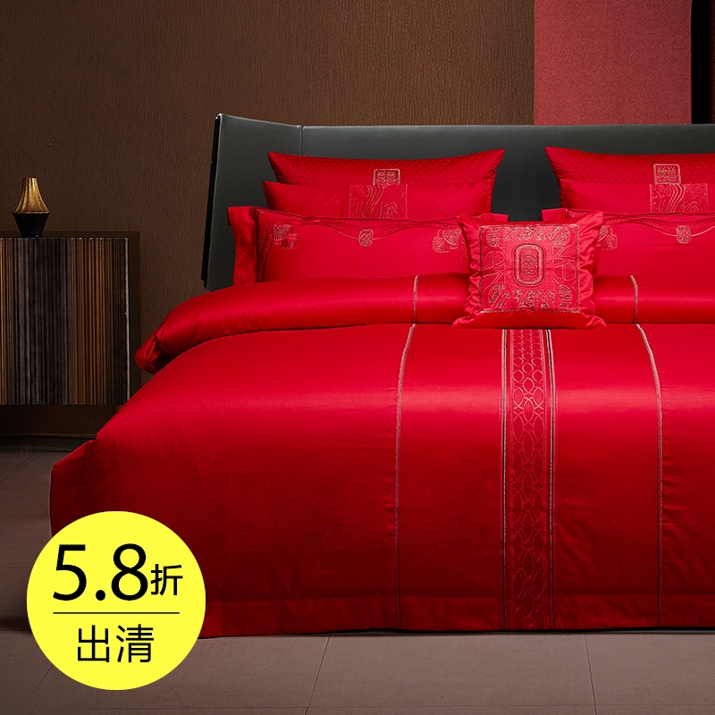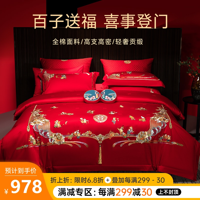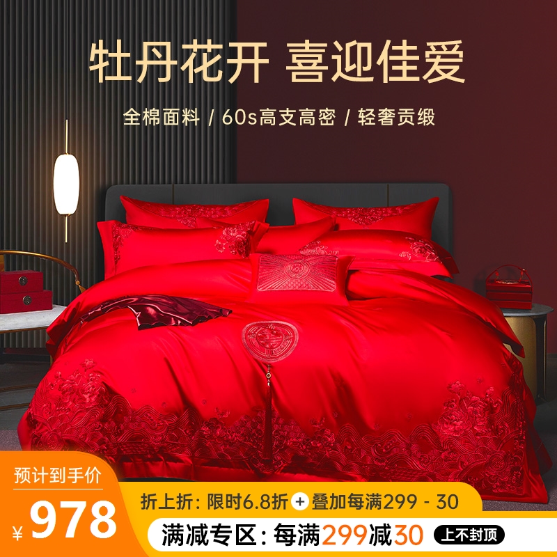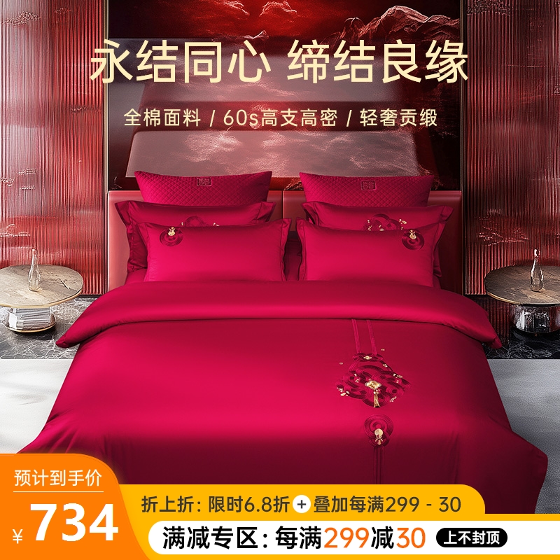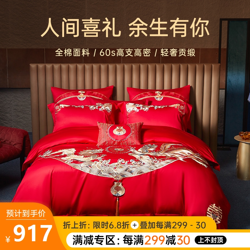臻品系列全棉刺绣禧嫁四件套(美丽红妆)