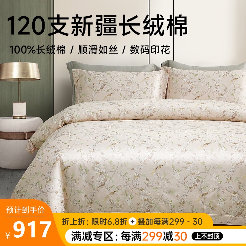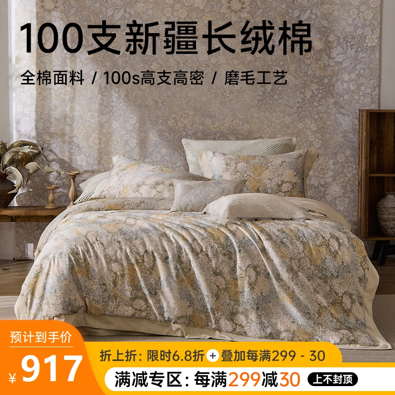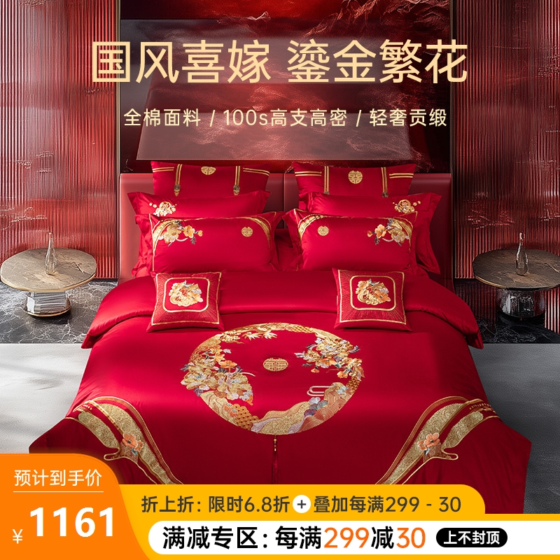 臻品系列100支全棉刺绣禧嫁四件套(鎏金繁花)
