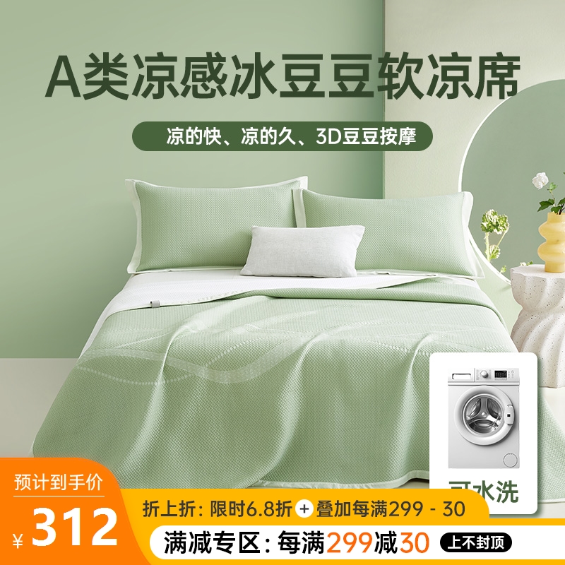 A类可水洗凉豆豆软凉席三件套(绿色)