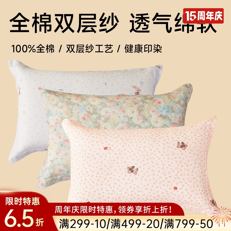全棉双层纱布透气儿童枕套