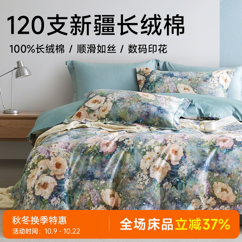臻品120支长绒棉轻奢印花四件套(黛影流芳)