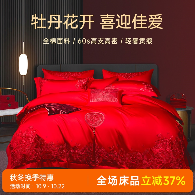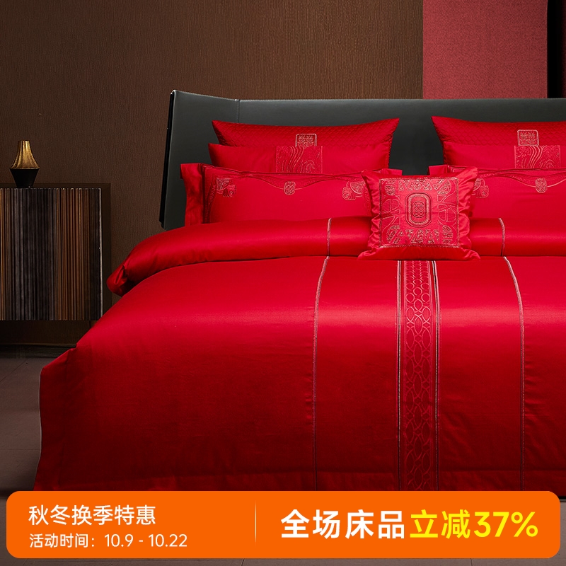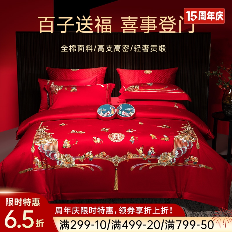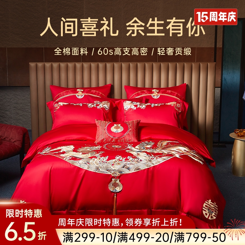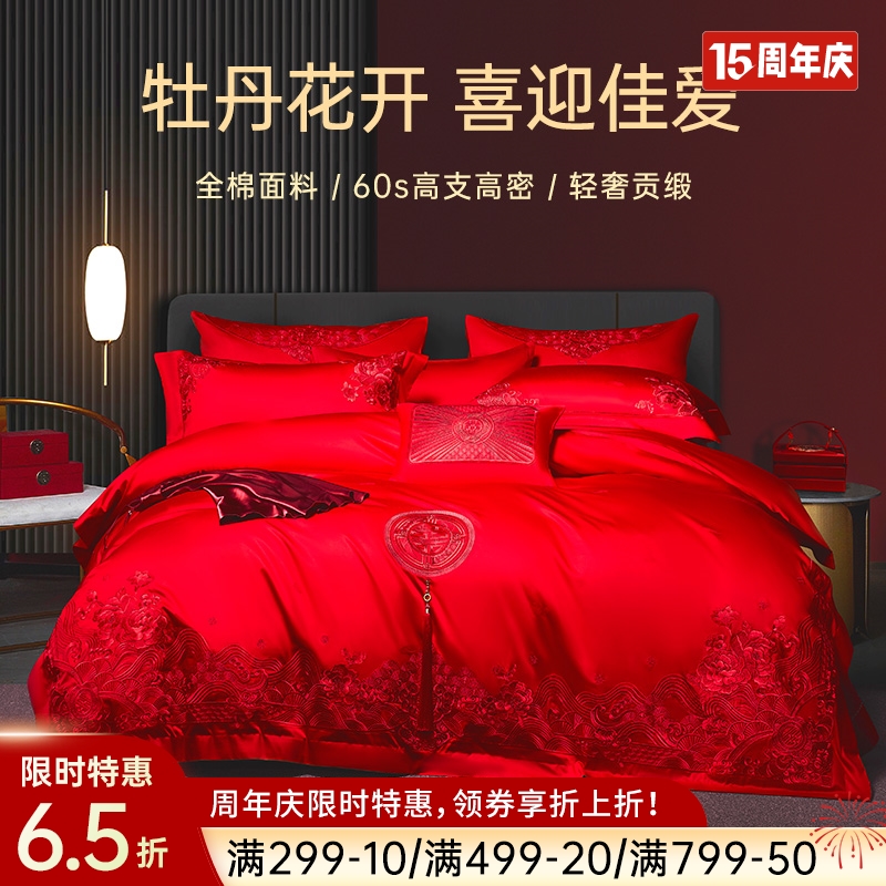 臻品系列全棉刺绣禧嫁四件套(美丽红妆)