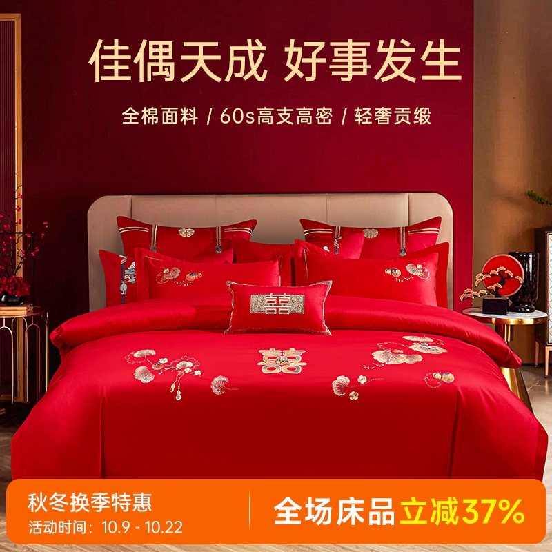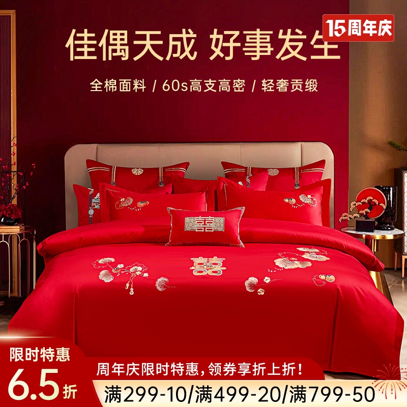 臻品系列全棉刺绣禧嫁四件套(最美喜事)