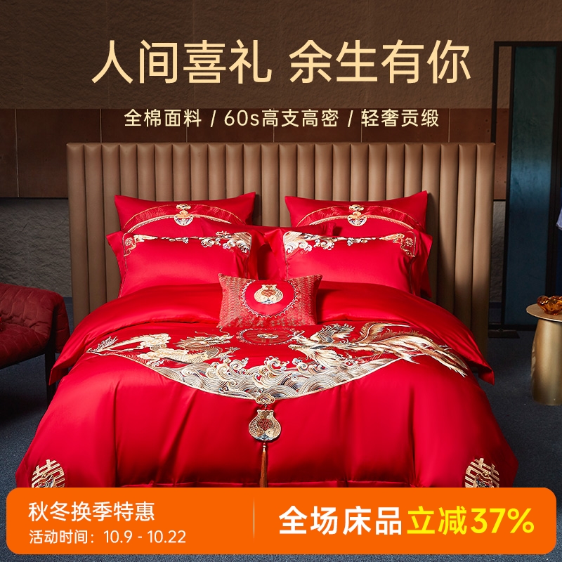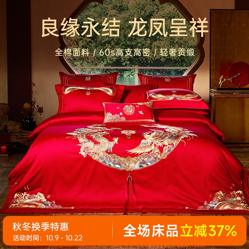 臻品系列全棉刺绣禧嫁四件套(龙凤喜舞)