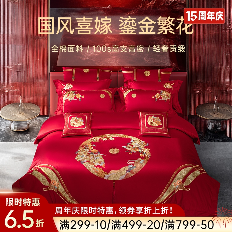 臻品系列100支全棉刺绣禧嫁四件套(鎏金繁花)