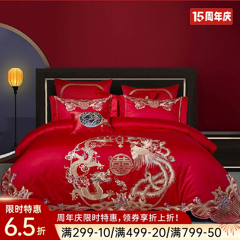 奢华全棉刺绣禧嫁四件套(龙凤团圆)
