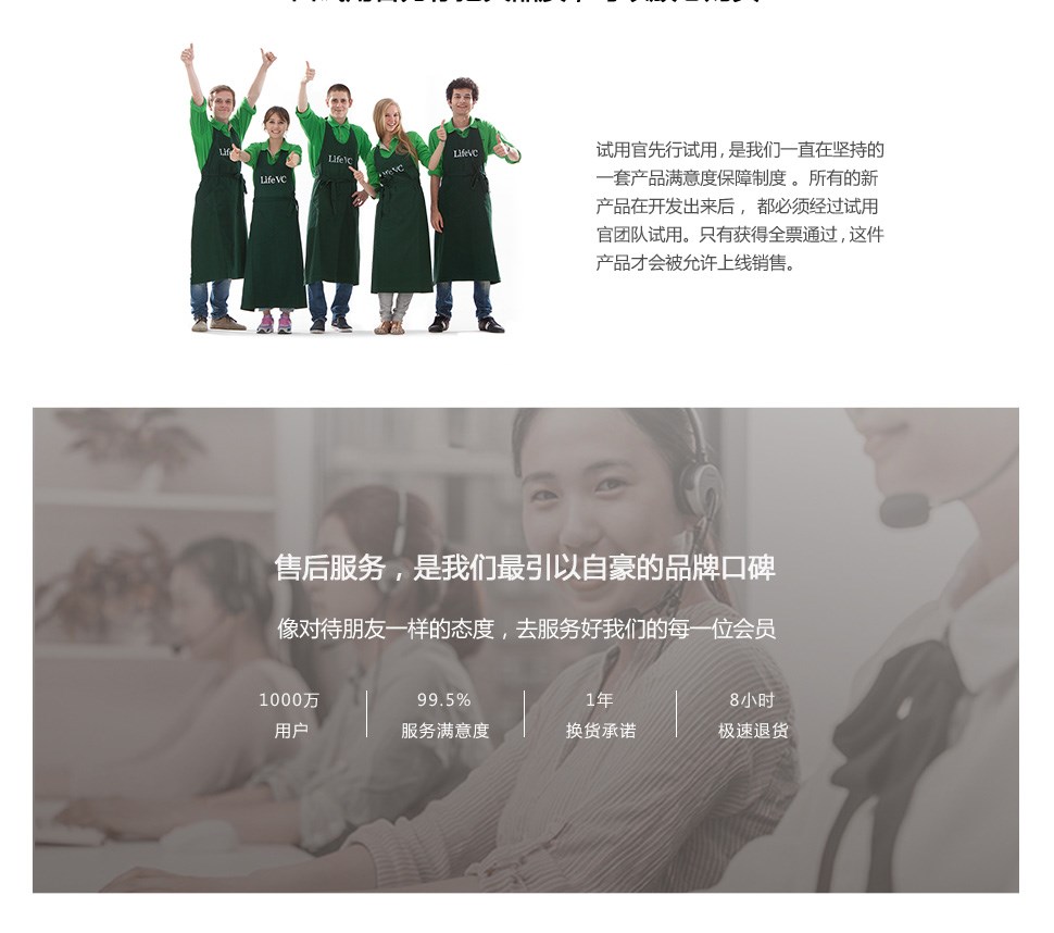 还有什么,比拥有上千万消费者、数千名员工的信任,更值得一家企业珍惜了?在LifeVC,珍惜员工,尊重他们的想法和工作结果,不过分苛责过失,尽可能提供愉快的工作氛围和满意的回报;在LifeVC,珍惜品牌信誉,倾听每一个消费者的声音,包括她们的赞誉和抱怨;在LifeVC,珍惜消费者的信任,用心为她们设计、生产最优质的产品,并提供真诚的服务;在LifeVC,他们常常要求员工假设,如果是自己的家人在购买产品,该如何工作?