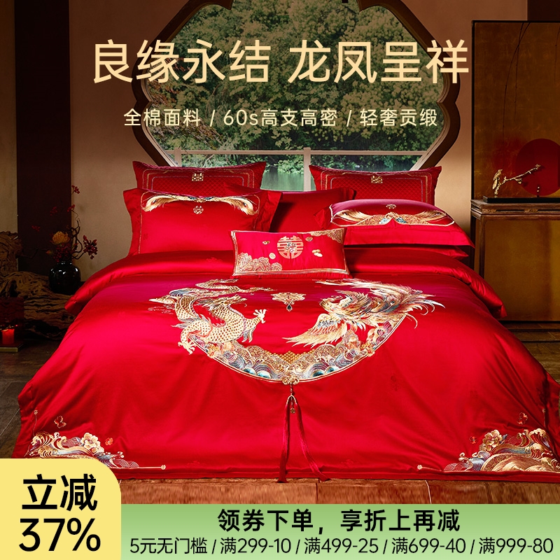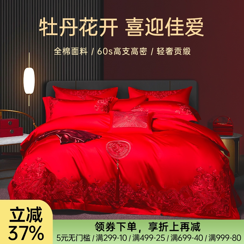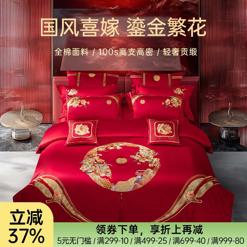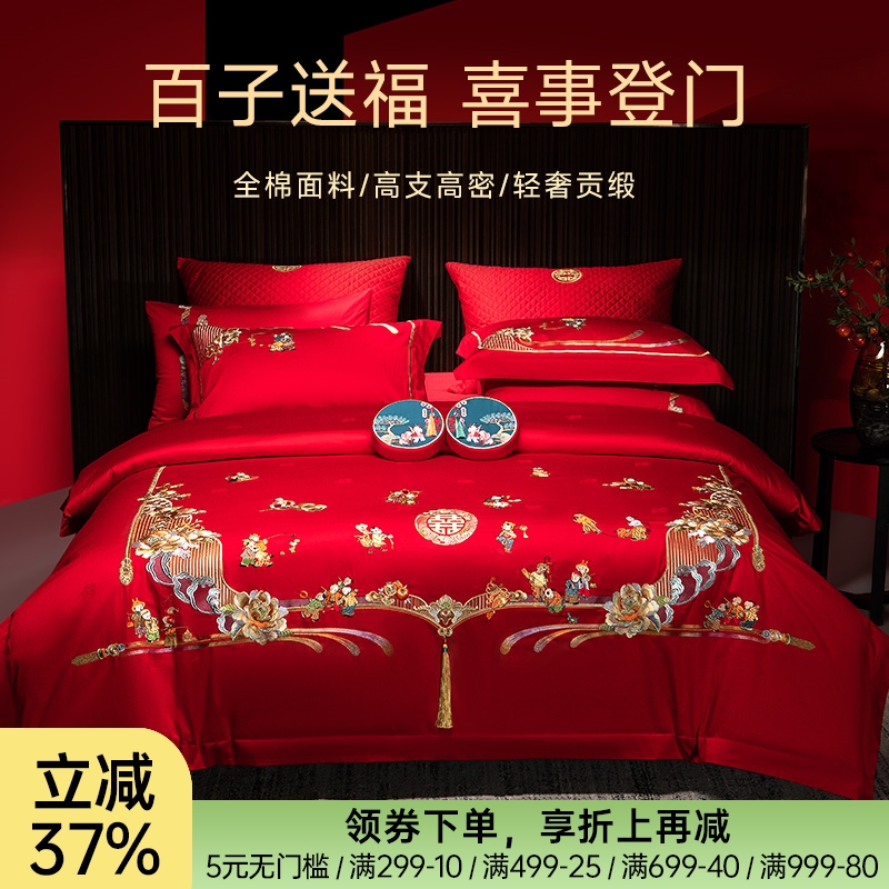 ¥89860支全棉刺绣禧嫁四件套(如意)