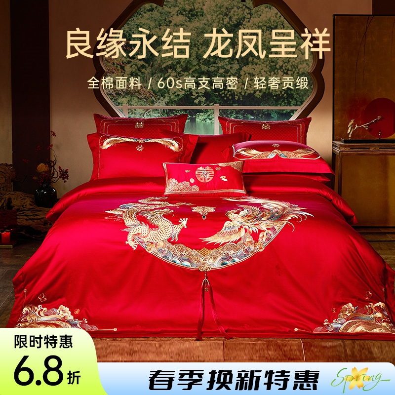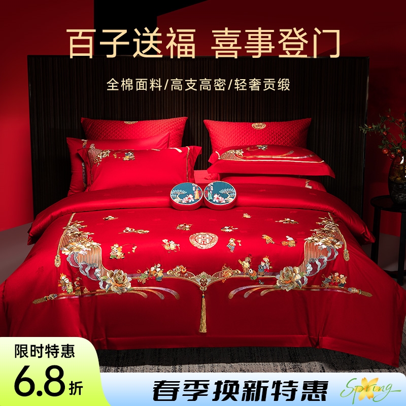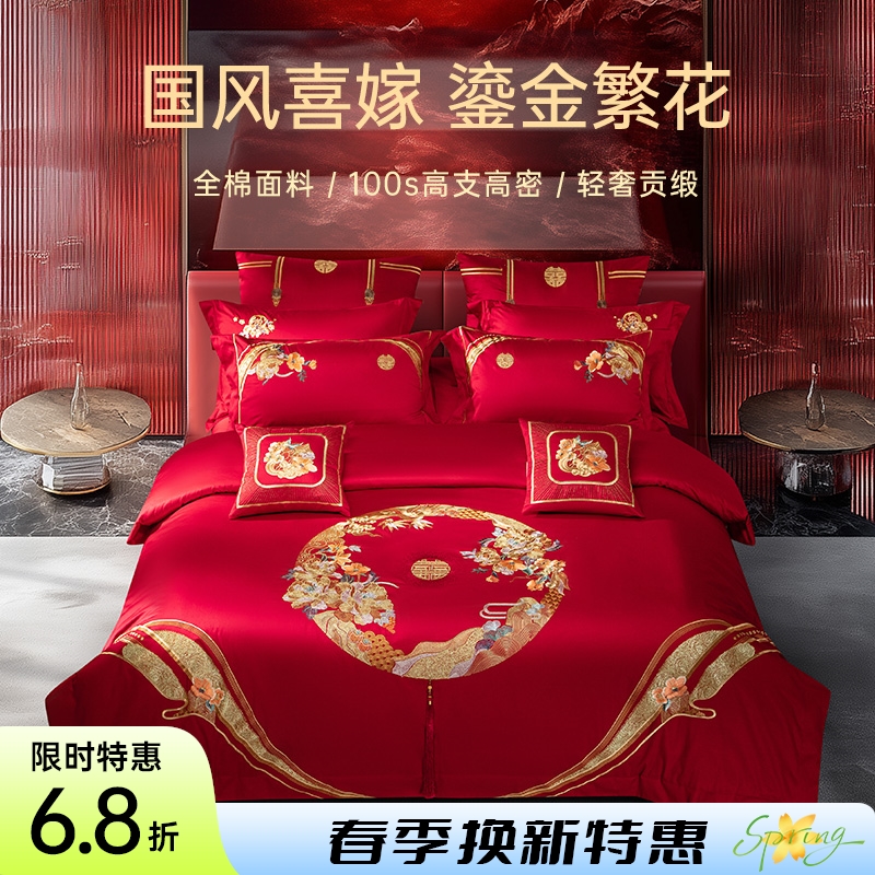 - 品名:全棉刺绣禧嫁四件套