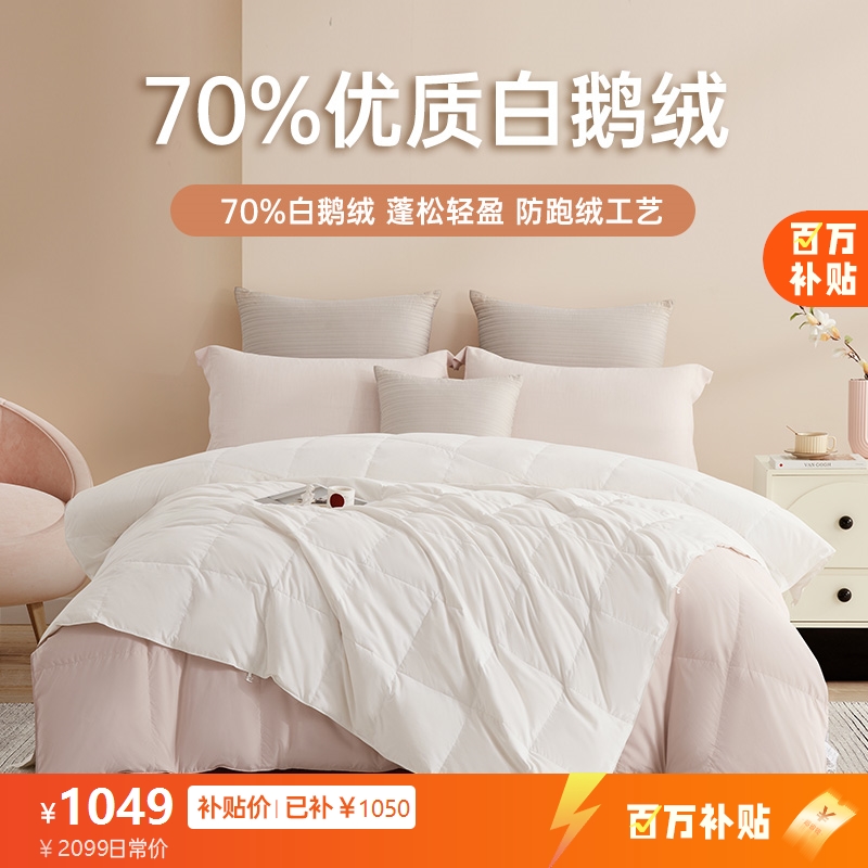 - 材质:面料:85%聚酯纤维+15%棉 填充物:白鹅绒(含绒量70%)