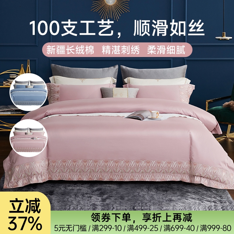 - 品名:100支新疆长绒棉刺绣四件套(雅韵)