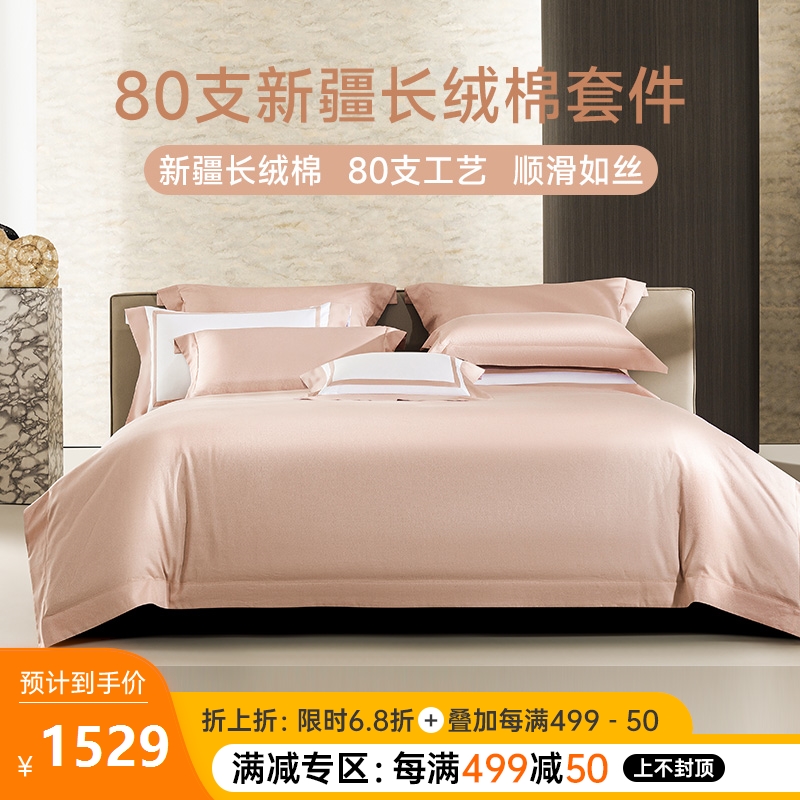 ¥2498每满499减50臻享80支新疆长绒棉提花四件套(素轩)