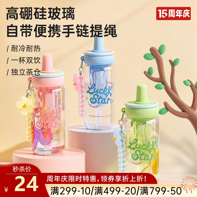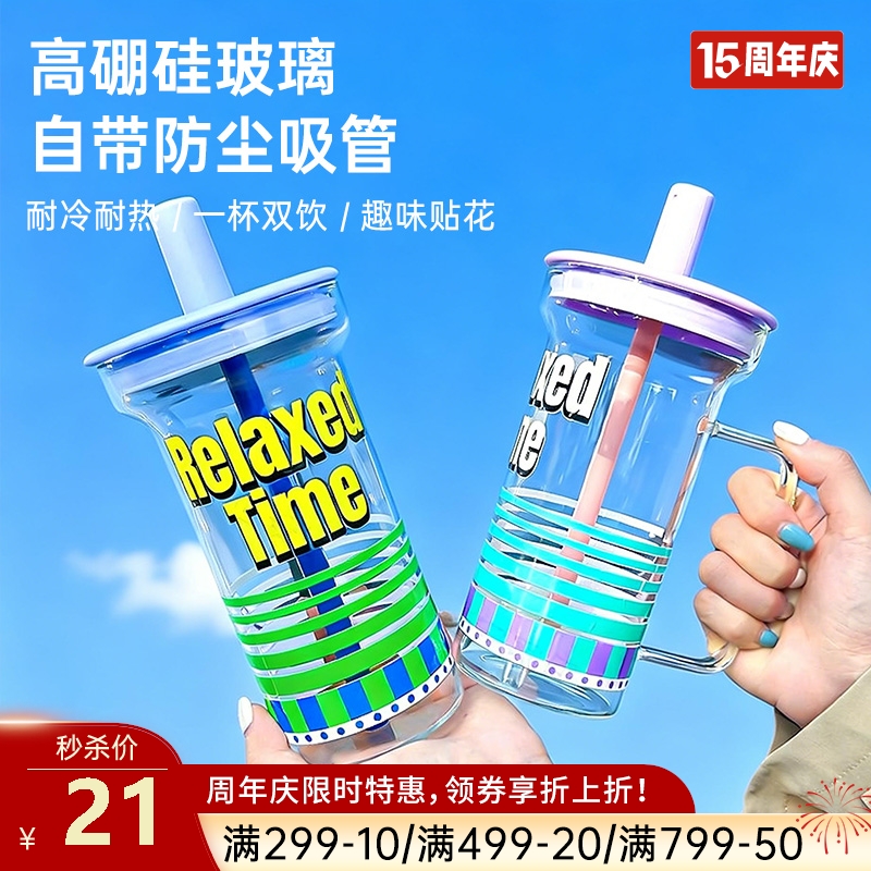 • 材质:杯身:高硼硅玻璃 杯盖、吸管套:食品级硅胶 吸管:PP
