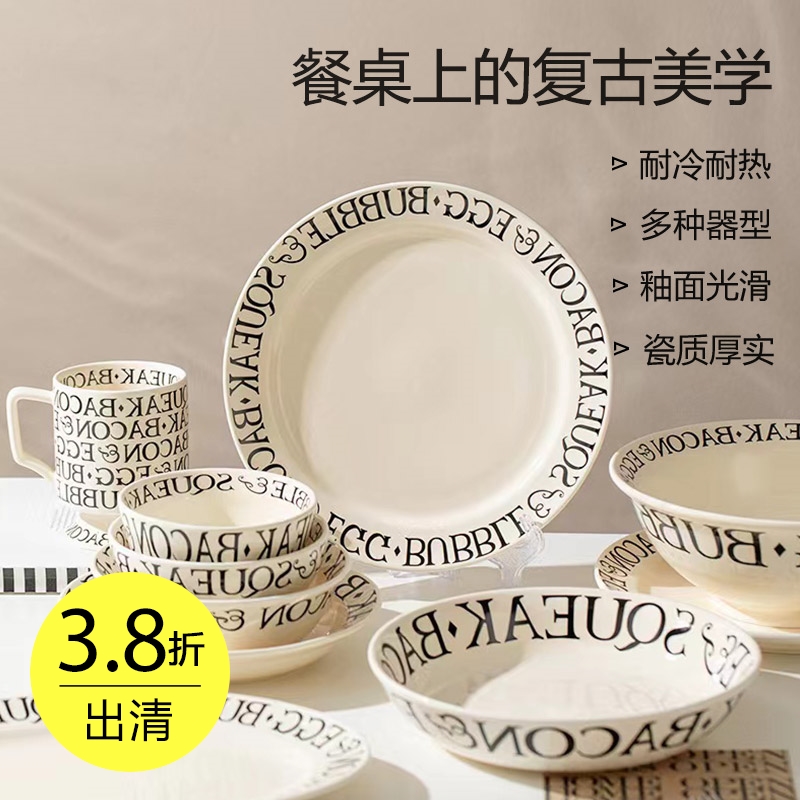 - 品名:复古时尚陶瓷餐具(字母系列)