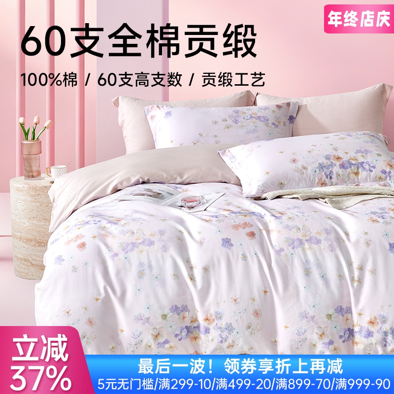 - 品名:60支新疆棉素色四件套(轻纱紫)
