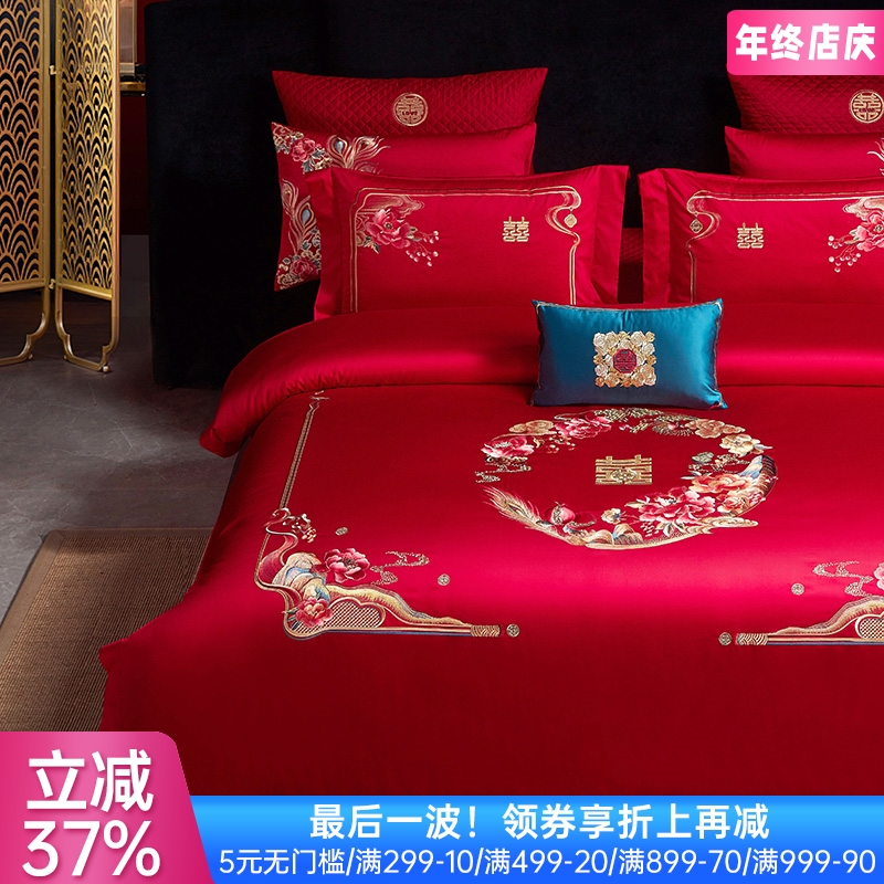 - 品名:臻品系列全棉刺绣禧嫁四件套