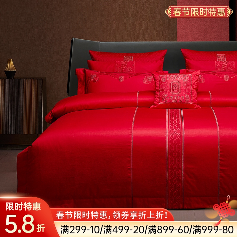 ¥1798臻品系列100支提花刺绣禧嫁四件套(爱的华尔兹)