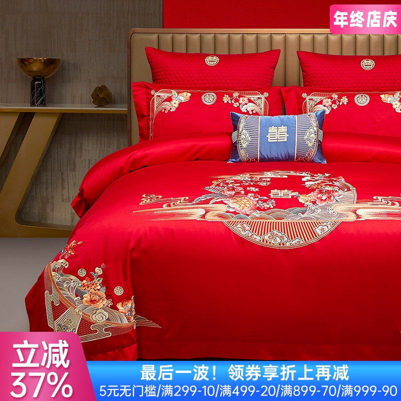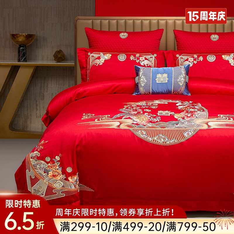 - 品名:臻品系列全棉刺绣禧嫁四件套(玉锦良缘)