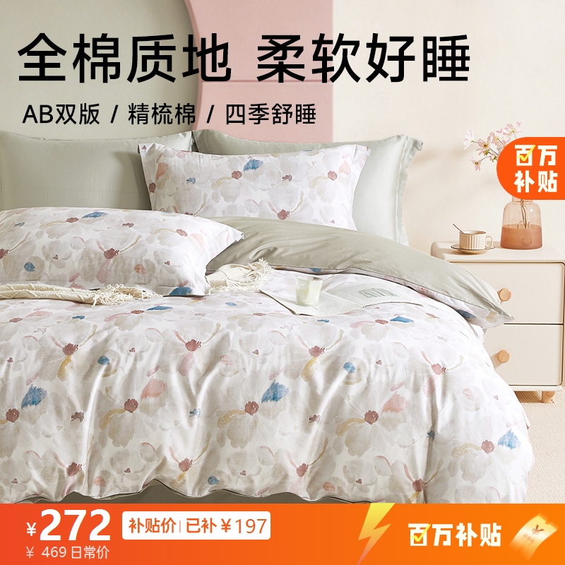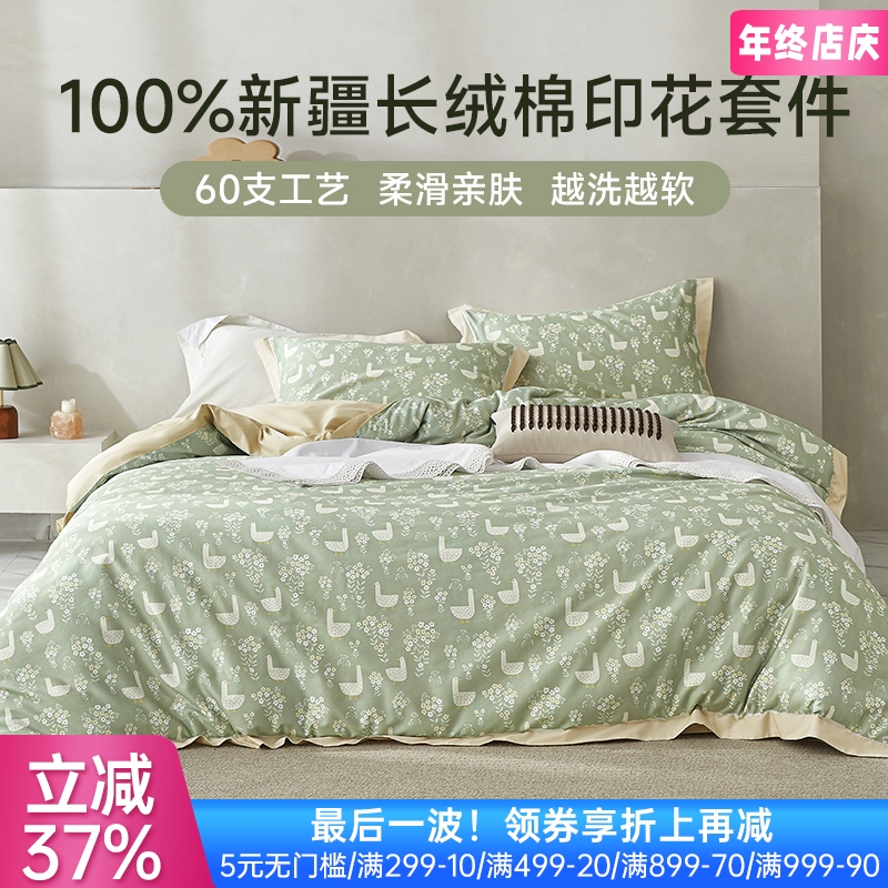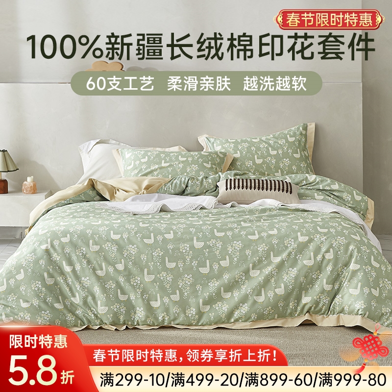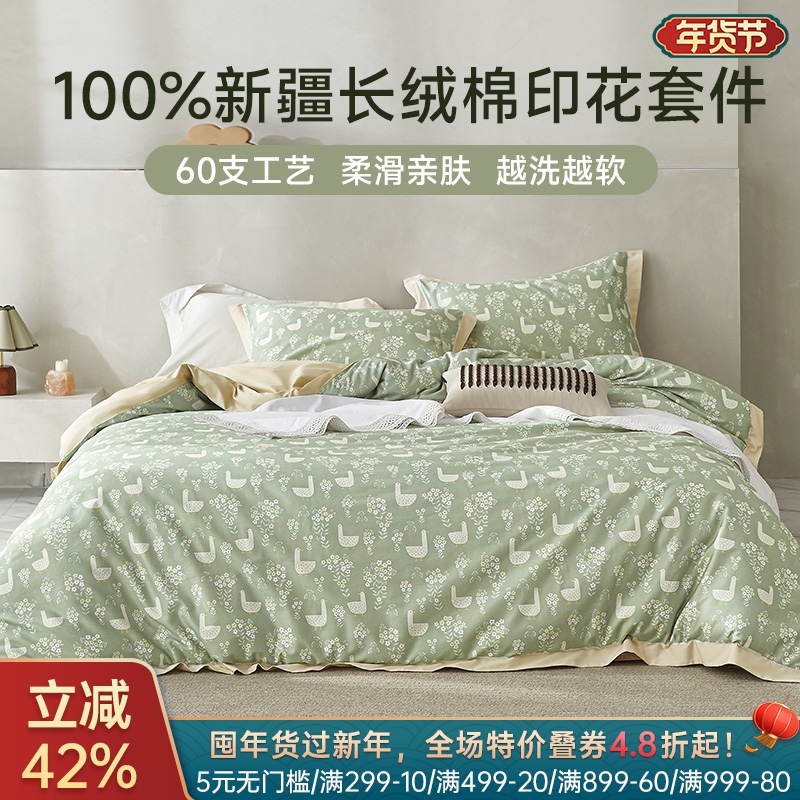 ¥939新疆长绒棉60支印花四件套(好运鸭)