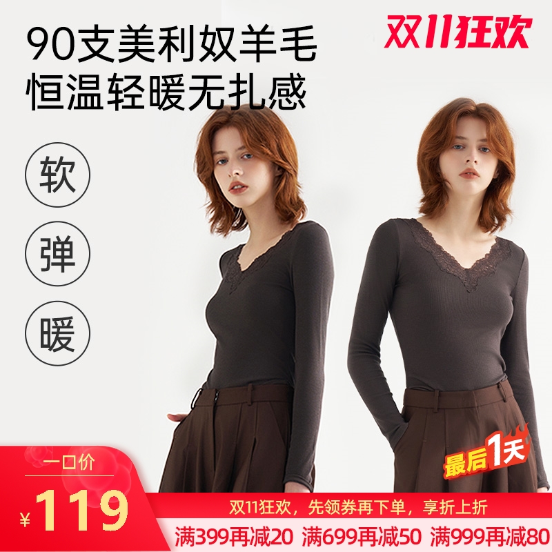 羊毛蕾丝V领打底衫