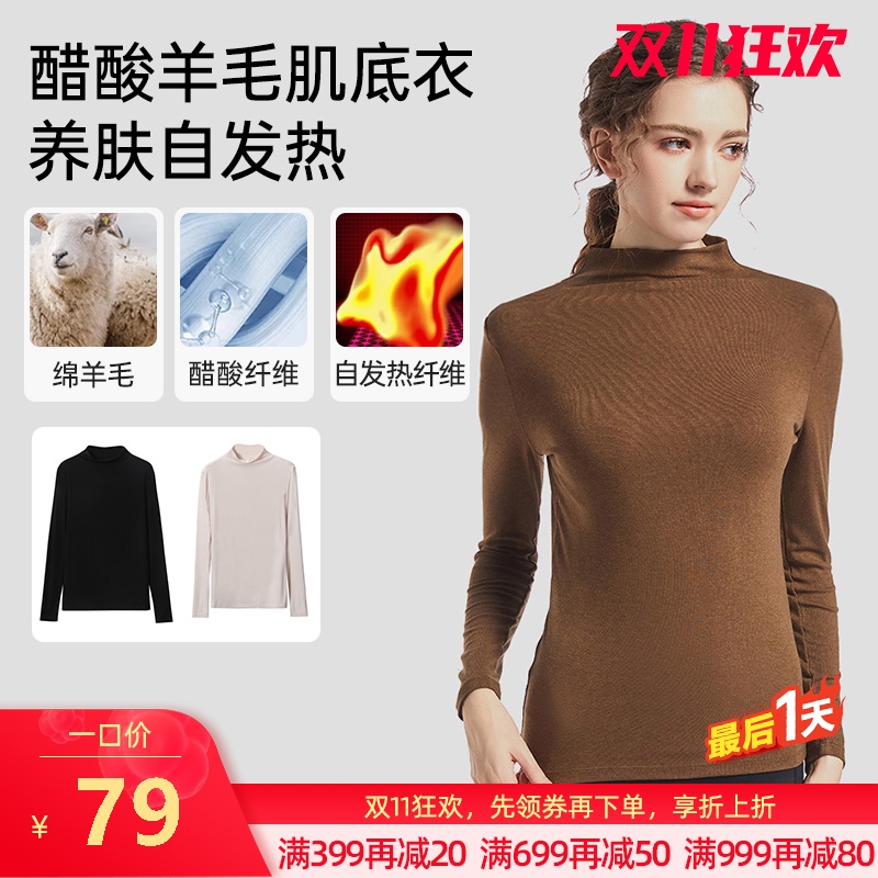 女士醋酸羊毛高领打底衫