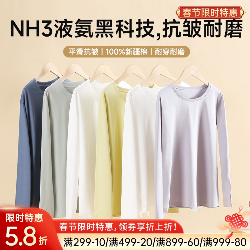 - 品名:长绒棉液氨长袖T恤