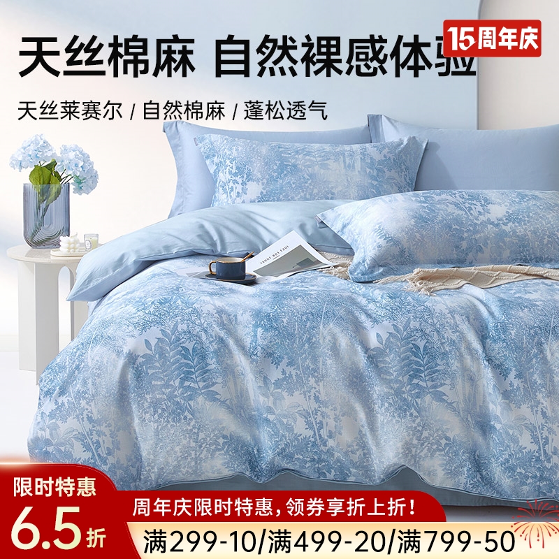 ¥87960支兰精天丝印花四件套(墨彩)