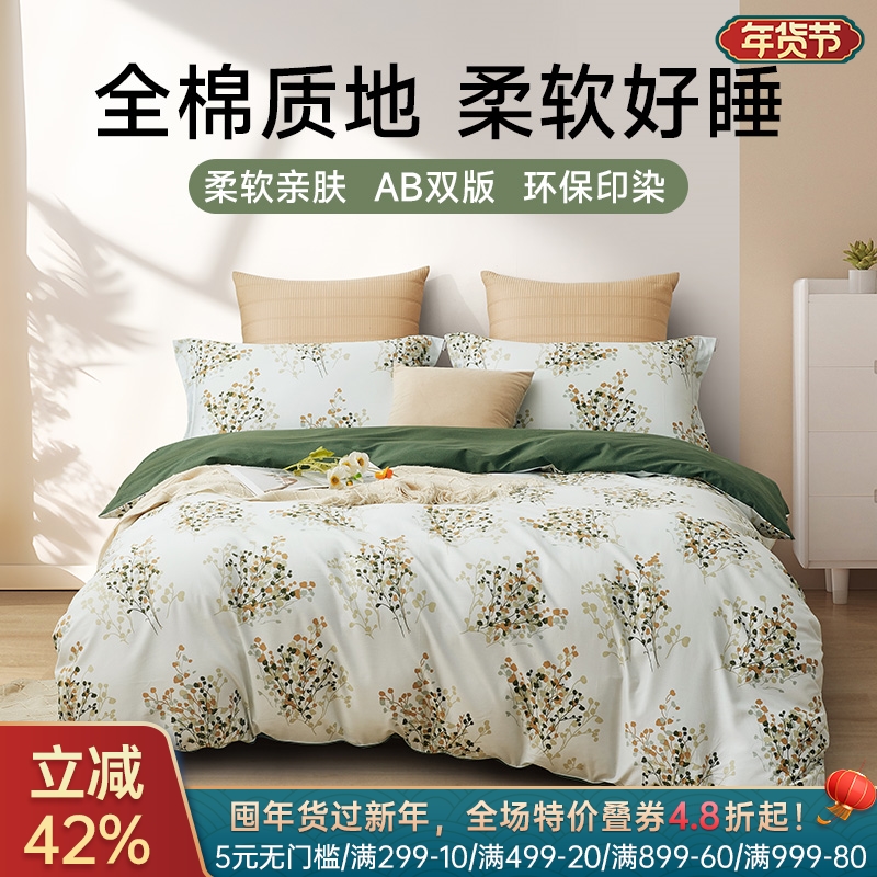 ¥529全棉舒适印花四件套(白芷)-2024