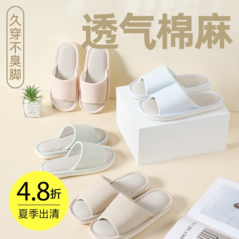 条纹四季棉麻拖鞋